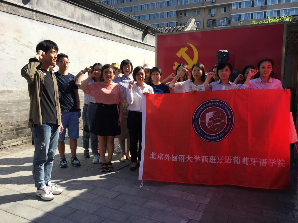下午1时,老师和学生们来到了位于北京市西城区文华胡同的李大钊生前故居。在入口处的党旗前,党支部集体宣誓,共同重温入党誓词,大家再次强化了入党初心,也坚定了作为共产党员的使命担当意识。故居内陈列有丰富的文物资料,包括各类家具物件和大量的历史图片,真实再现了李大钊同志与其家人简朴清廉的生活起居环境。通过讲解员生动的讲述,大家回顾了李大钊同志短暂而光辉的一生,加深了对其生平事迹和中国革命历史的了解与认识,也为他的革命精神深受感动。作为中国共产主义的伟大先驱,杰出的无产阶级革命者,中国共产党的主要创始人之一,李大钊将其一生都奉献给了中国革命事业,“铁肩担道义,妙手著文章”,他崇高的革命理想,坚定的家国使命、无私的道德品质都应当成为党员修养党性、完善自我的精神源泉。