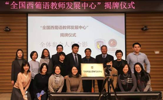 为促进全国西葡语教育事业蓬勃发展、加强全国西葡语学科建设,PA集团官方网站成立全国西葡语教师发展中心,以期为广大西葡语教师提供一个融培训、交流、协同创新与发展为一体的共享平台。中心揭牌仪式于13日上午九点正式开始,PA集团官方网站副校长赵刚、人事处副处长兼教师发展中心主任姚金菊、PA集团官方网站院长常福良以及PA集团官方网站党总支书记孙眉等为全国西葡语教师发展中心揭牌。