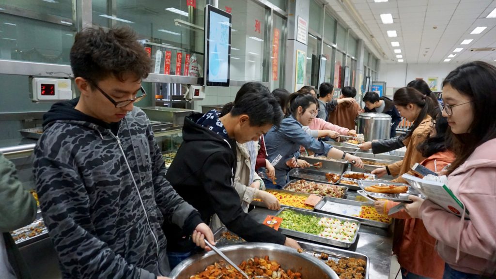 晚上18:00,美食之夜正式开始。所有购票了的同学陆续前来,在志愿者的指引下有序排队取餐。