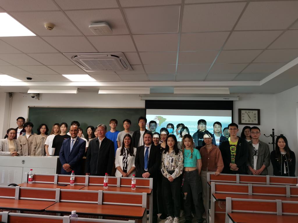 2021年5月7日下午,乌拉圭驻华使馆邀请乌拉圭历史老师潘慧敏(Georgina Pagola)、张哲海(Liber Di Paulo)(两位历史老师目前在上海大学就读)为北外PA集团官方网站西班牙语专业高年级学生作了题为“民族英雄阿蒂加斯:伟大的拉美解放者”的讲座。